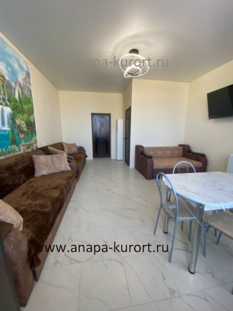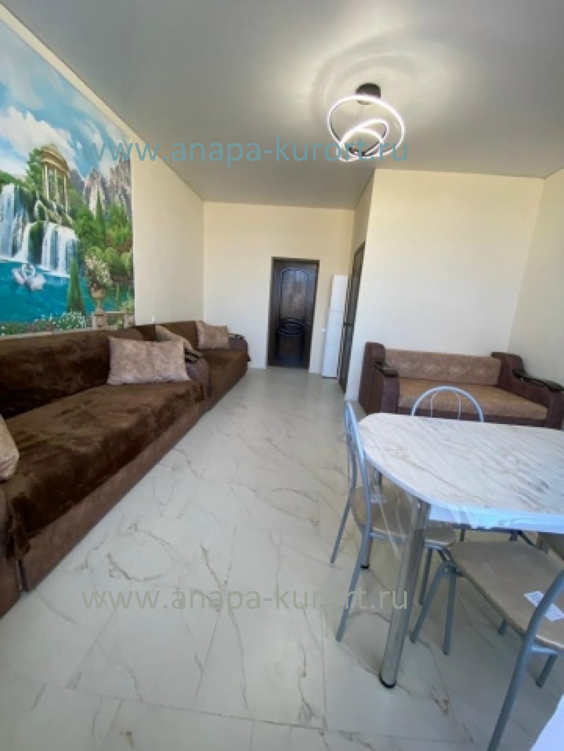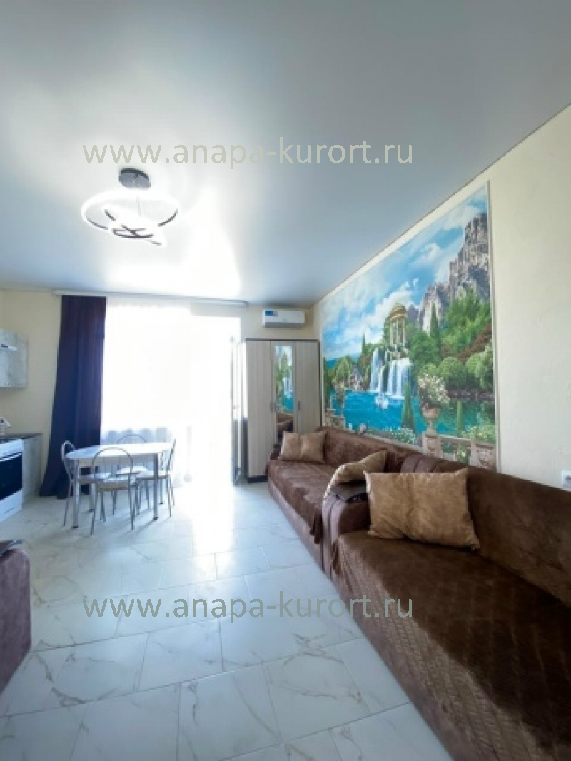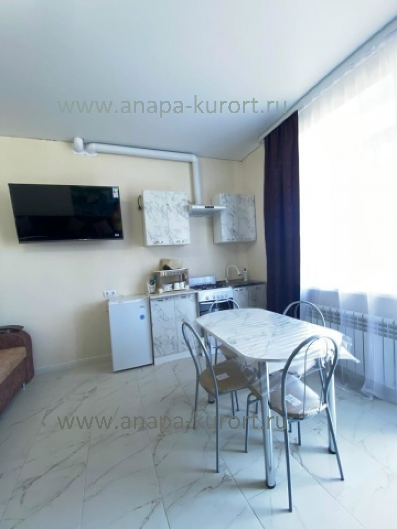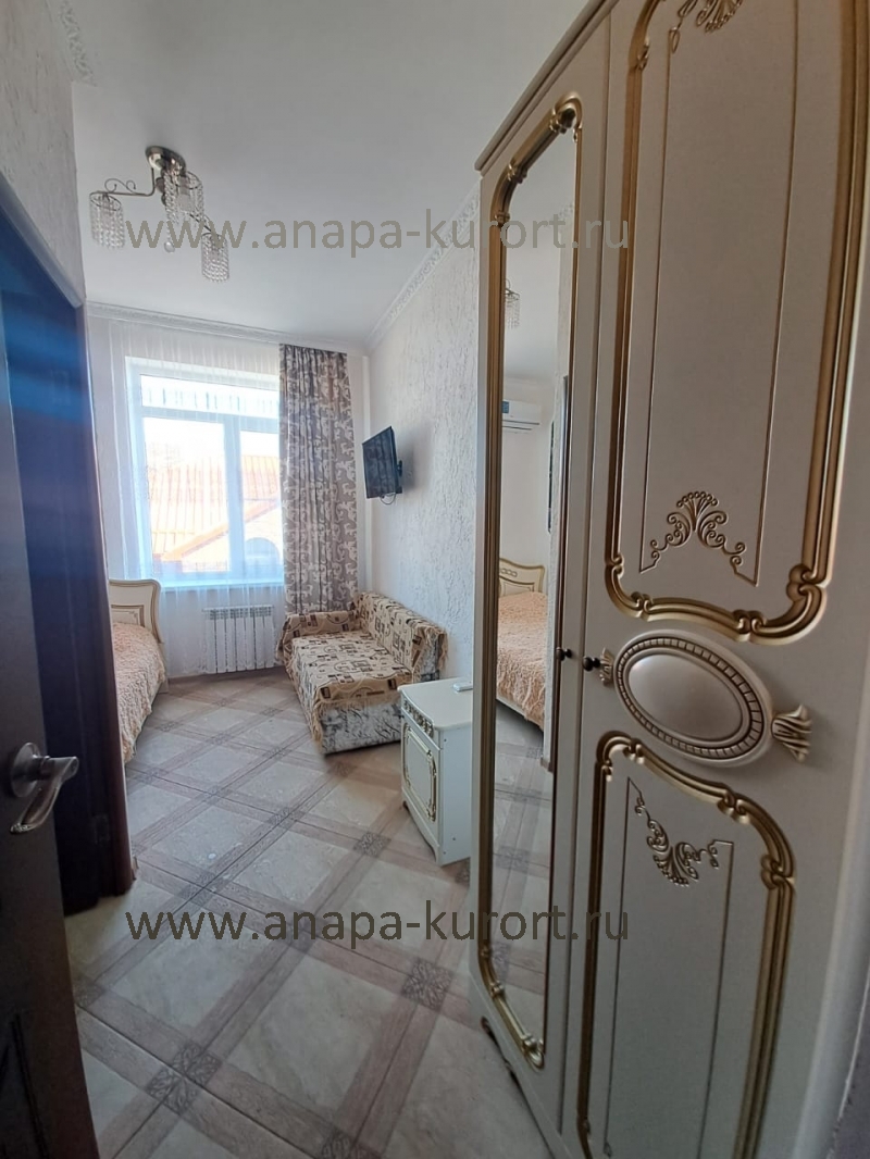 В номере душ с сан узлом,шкаф,двухместная кровать,двухместный диван,кресло-кровать,тумбочки,посуда,стол со стульями,холодильник,телевизор, вай-фай,сплит система.Также имеются номера с балконами с видом на море.На этаже полностью оборудованная кухня со всеми необходимыми принадлежностями для самостоятельного приготовления пищи, стиральная машина ,сушилка для белья и гладильный стол с утюгом.При заселении бесплатно выдаются - постельное бельё,полотенца,тапочки,мыло,гель для душа, шампунь.Во дворе бесплатно предоставляется мангальная зона с беседкой и бассейн с лежаками и качелями.На всей территории отеля ведётся видеонаблюдение,на пред домовой зоне предоставляется бесплатно парковка автомобиля.Расстояние до моря 150 метров.В шаговой доступности - детские площадки, рынки,продуктовые и хозяйственные магазины,кафе,аптеки,общественный транспорт,Крещенский парк и Парк Ореховая роща.В нашем райском уголке Вы проведёте незабываемый комфортный отдых на побережье Анапы.Цены: