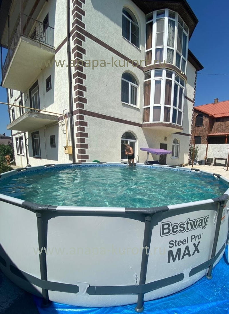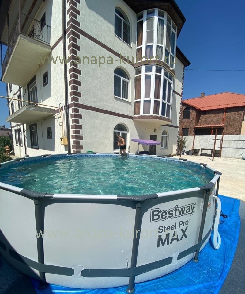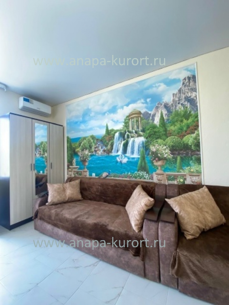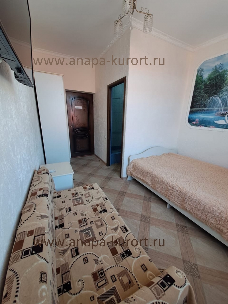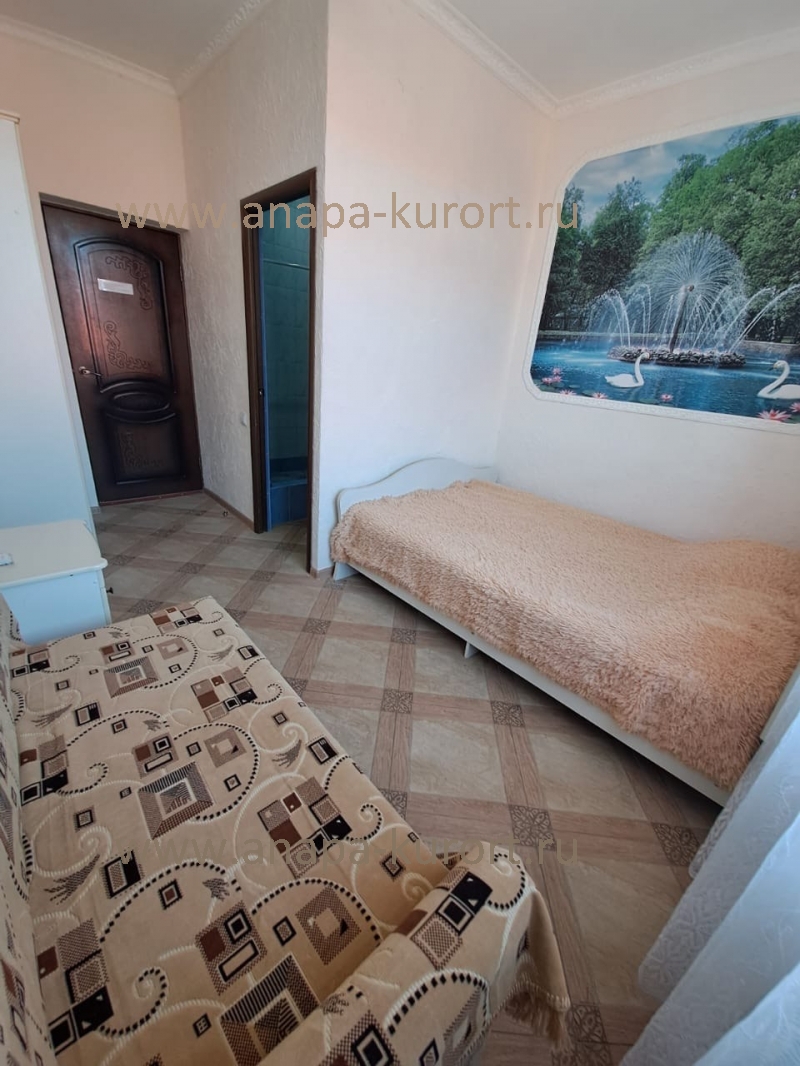 В номере душ с сан узлом,шкаф,двухместная кровать,кресло-кровать,тумбочки,посуда,телевизор, вай-фай,сплит система.Также имеются номера с балконами с видом на море.На этаже полностью оборудованная кухня со всеми необходимыми принадлежностями для самостоятельного приготовления пищи, стиральная машина ,сушилка для белья и гладильный стол с утюгом.При заселении бесплатно выдаются - постельное бельё,полотенца,тапочки,мыло,гель для душа, шампунь.Во дворе бесплатно предоставляется мангальная зона с беседкой и бассейн с лежаками и качелями.На всей территории отеля ведётся видеонаблюдение,на пред домовой зоне предоставляется бесплатно парковка автомобиля.Расстояние до моря 150 метров.В шаговой доступности - детские площадки, рынки,продуктовые и хозяйственные магазины,кафе,аптеки,общественный транспорт,Крещенский парк и Парк Ореховая роща.В нашем райском уголке Вы проведёте незабываемый комфортный отдых на побережье Анапы.Цены: